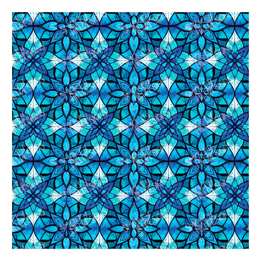 PatternPly® Full Coverage Blue Mosaic Stained Glass Flowers