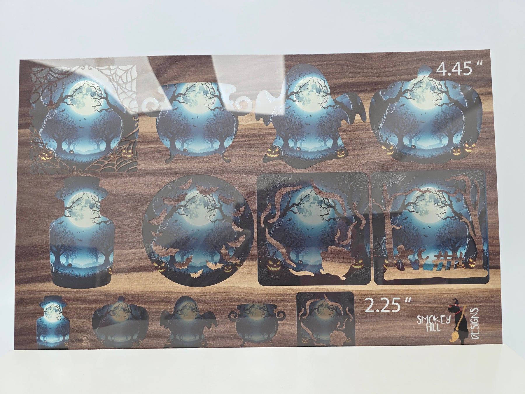 Transparent PatternPly® features patterns that are translucent. completely cover the sheet, with no gaps. Clear cores (acrylic and flex) will be translucent and allow light to pass through the sheet. These options are extremely popular for suncatchers, night lights, and lanterns. Glitter and mirrored cores (acrylic and flex) are OPAQUE. Only the pattern itself is translucent, enabling the