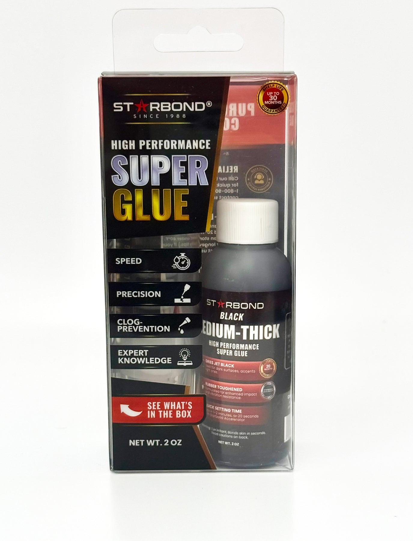 Starbond® "Knot-filler" Black Medium-Thick is the go-to black CA glue for those with knot problems in their wood. Known for flawless knot and void fills, this rubber-toughened formula flows thick (500–600 cps), stays put, and cures to a deep jet-black finish that elevates every piece.