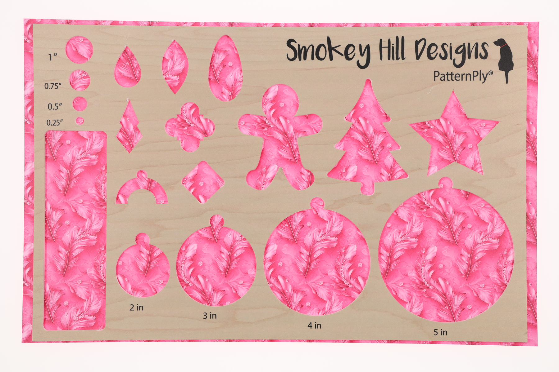 Full coverage PatternPly® features patterns that completely cover the sheet, with no gaps. This means that the only way to reveal the core color underneath is to engrave away the pattern. If there is a background color in the product photo, this background will be present no matter which core is selected. All full coverage PatternPly® is opaque.