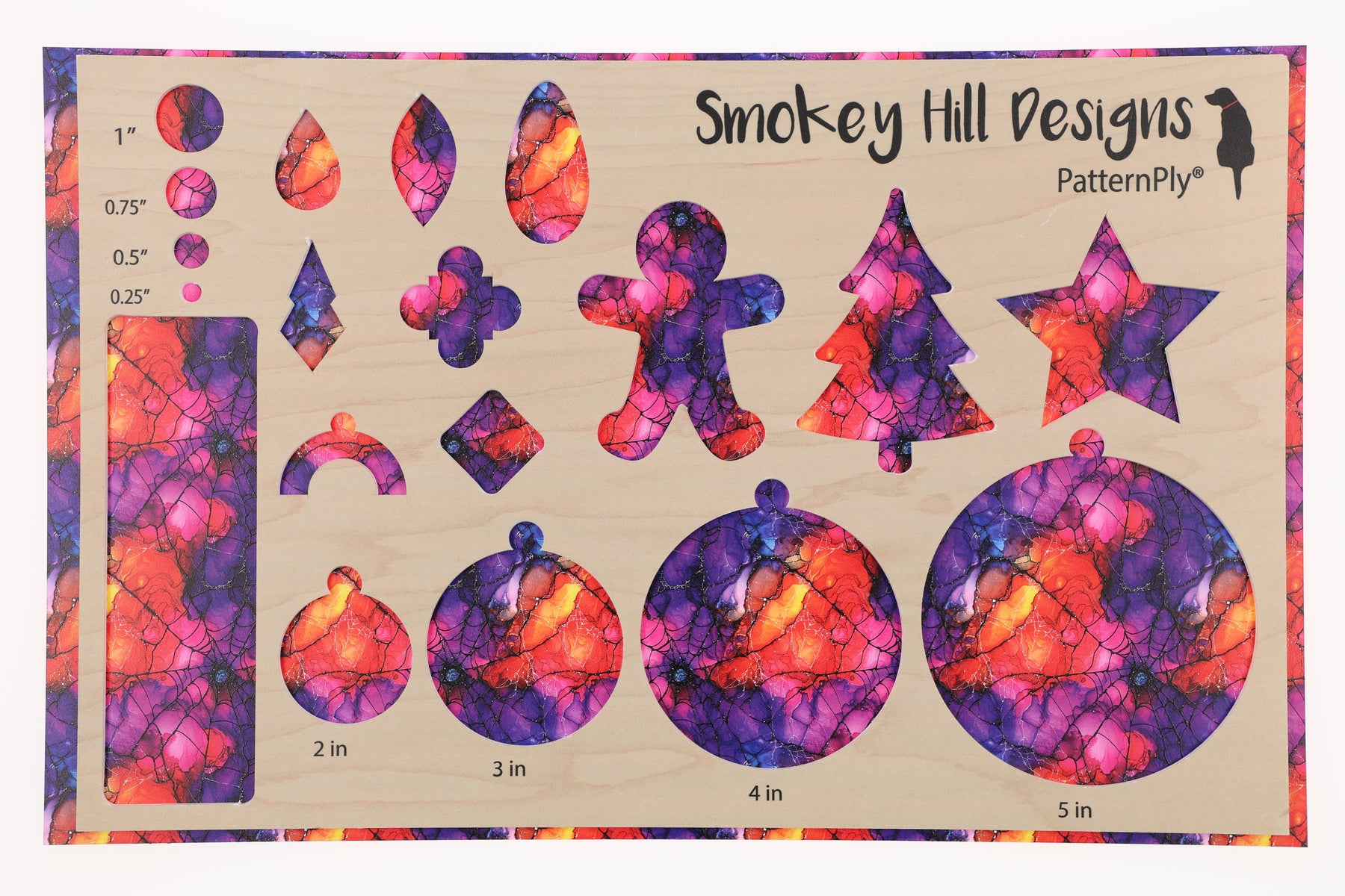 Transparent PatternPly® features patterns that are translucent. completely cover the sheet, with no gaps. Clear cores (acrylic and flex) will be translucent and allow light to pass through the sheet. These options are extremely popular for suncatchers, night lights, and lanterns. Glitter and mirrored cores (acrylic and flex) are OPAQUE. Only the pattern itself is translucent, enabling the