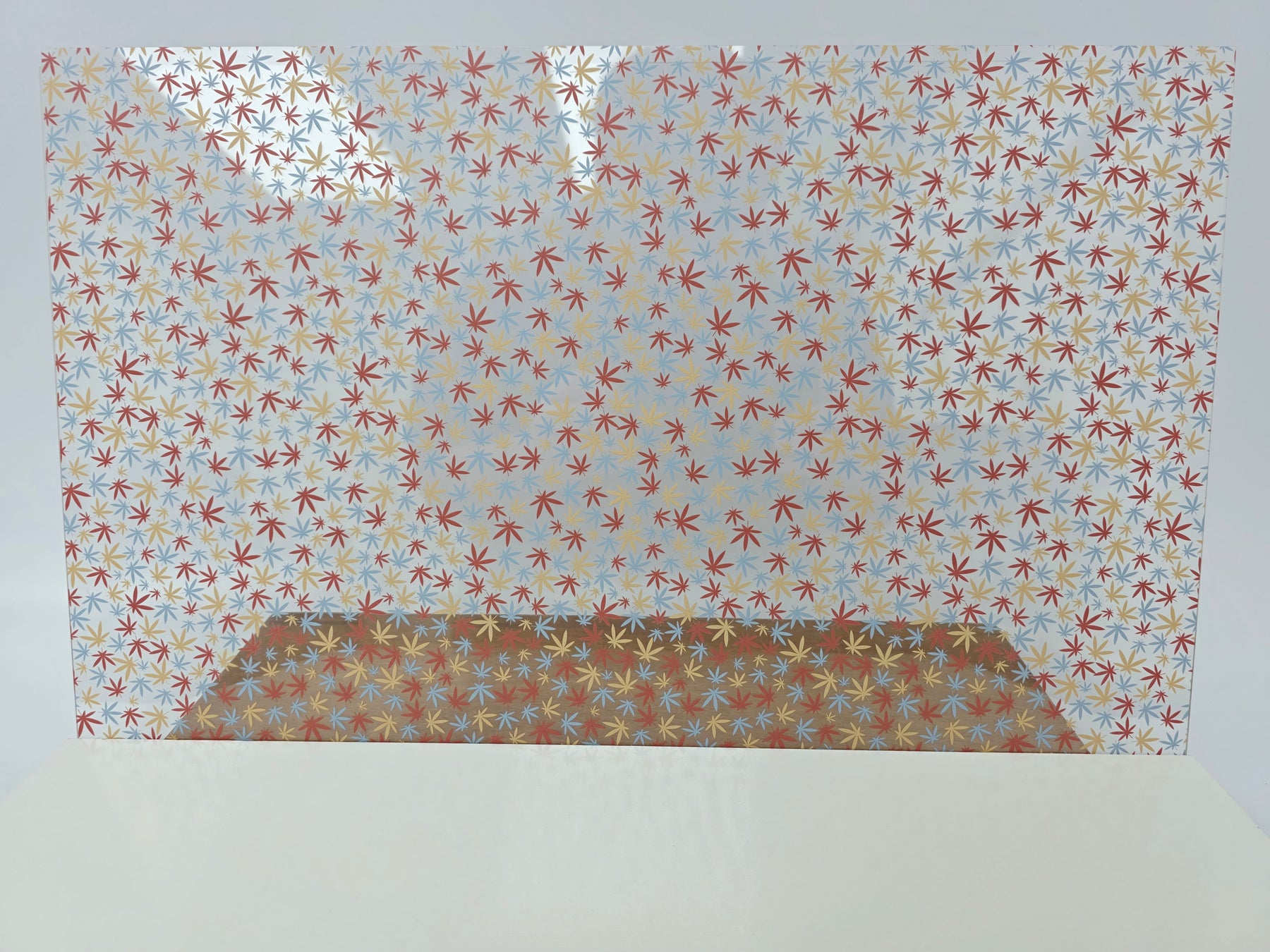 Scattered PatternPly® patterns contain gaps or breaks through which the core material is visible. For example, a scattered heart pattern on clear acrylic core will have clear acrylic showing through between the hearts. The same pattern on black acrylic will be black in between the hearts. The amount of core material showing will vary from pattern to pattern; some patterns contain large gaps between the pattern elements, while others are much closer together.