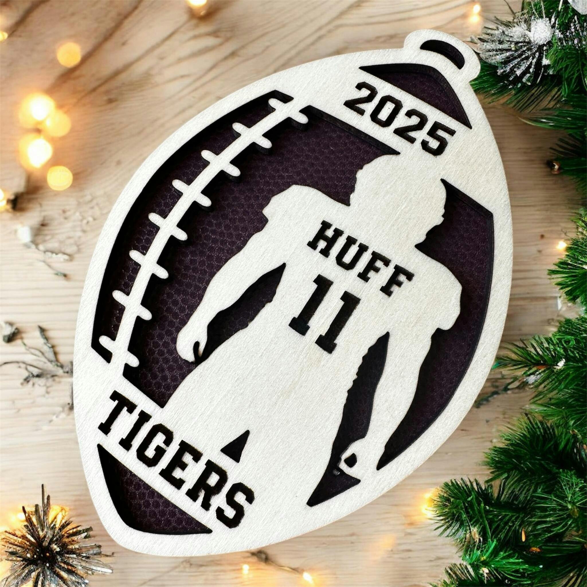 The football “leather” look acrylic was just what I was hoping for. It really looked good on my Christmas ornament for our football player. Delivery time was also quick.